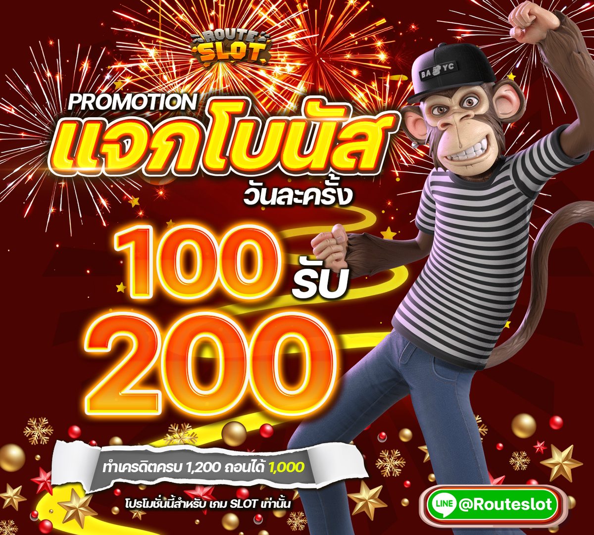 แจกโบนัสวันละครั้ง ฝาก 100 รับ 200