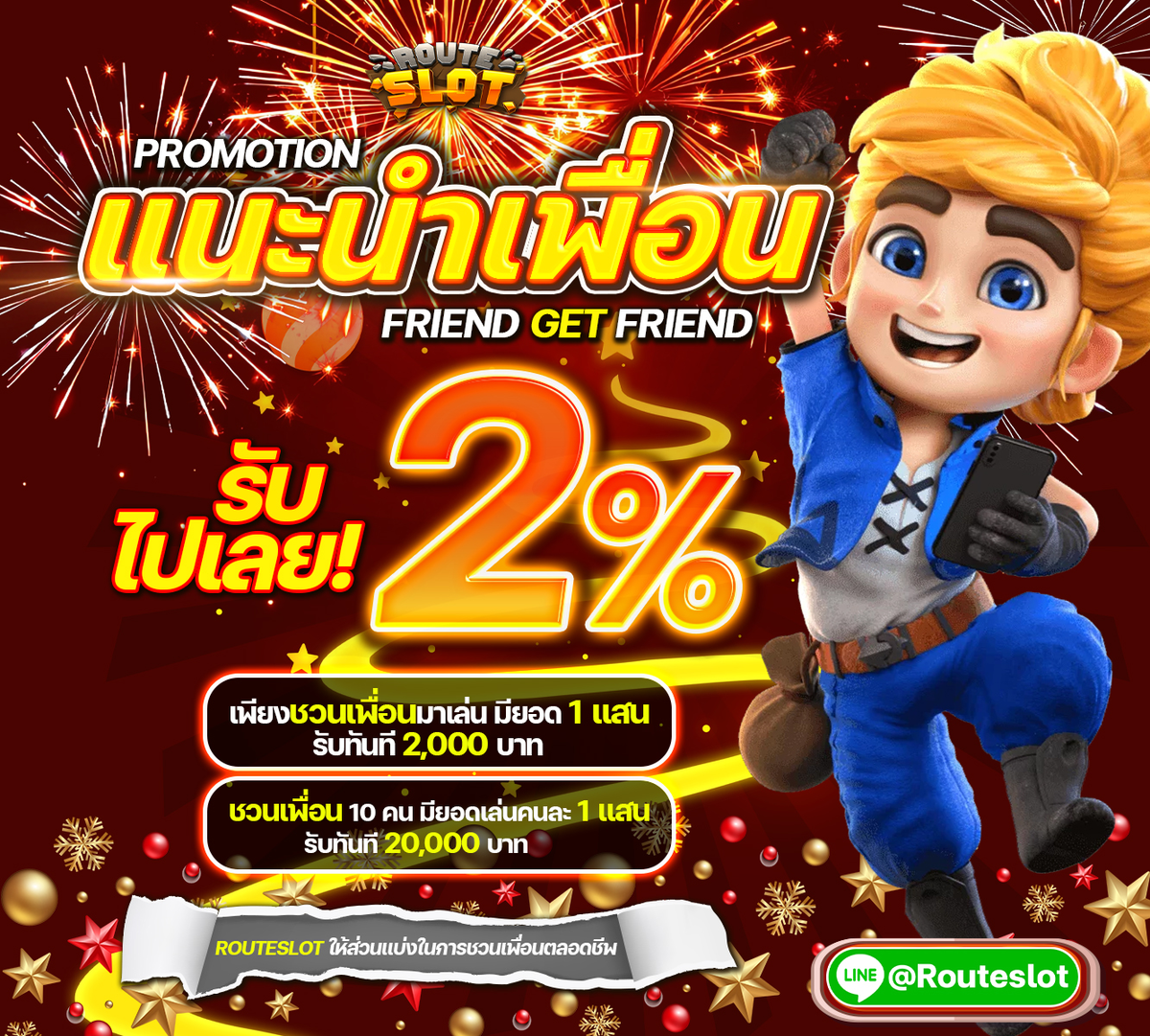 แนะนำเพื่อน ROUTESLOT รับฟรี 2%